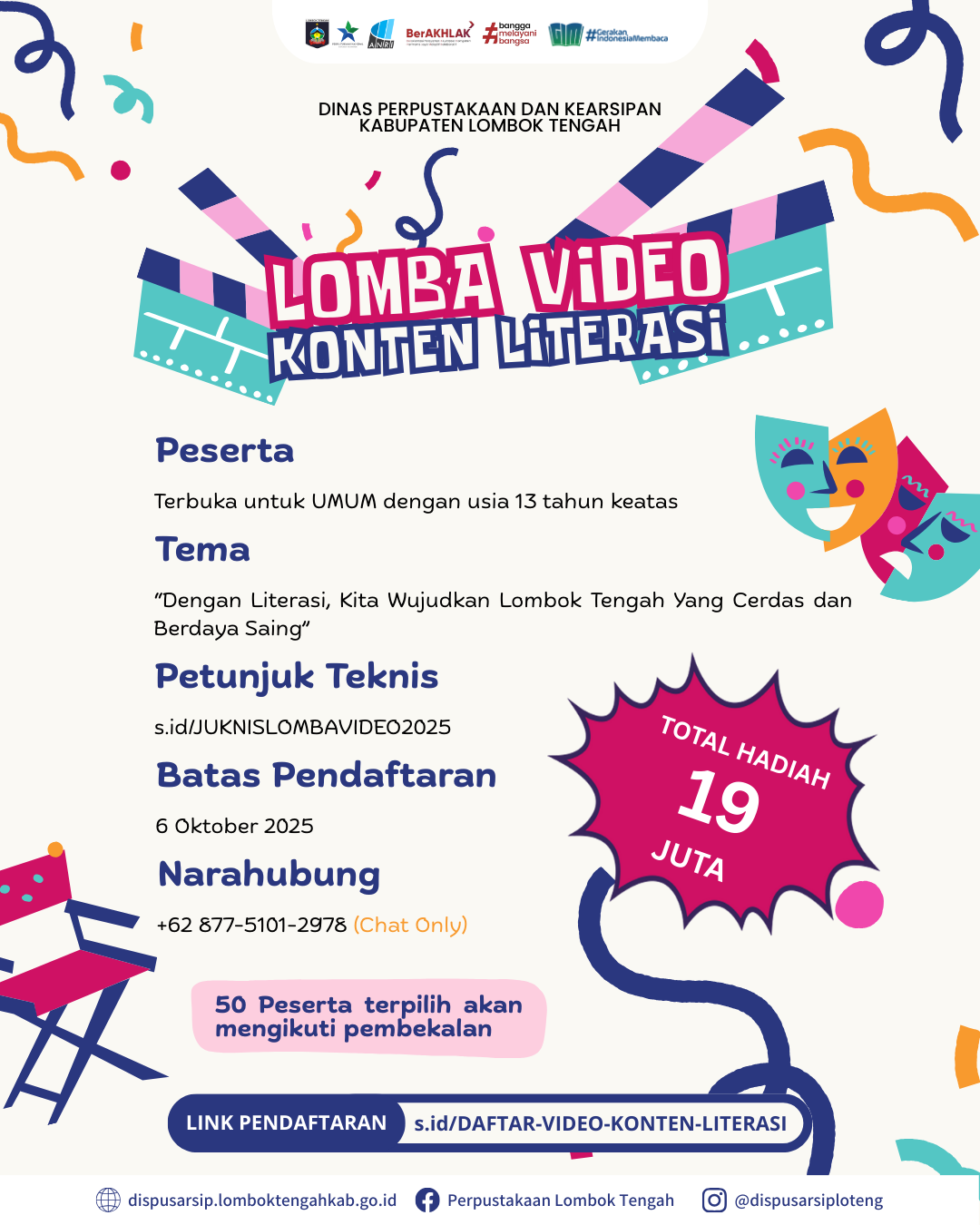 ? Mari berkreasi, berinovasi, dan berliterasi melalui Lomba Video Konten Literasi Kabupaten Lombok Tengah 2025!